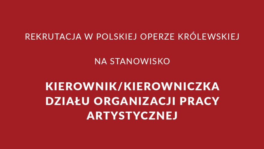 Polska Opera Królewska ogłasza rekrutację na stanowisko: kierownik/kierowniczka działu organizacji pracy artystycznej.